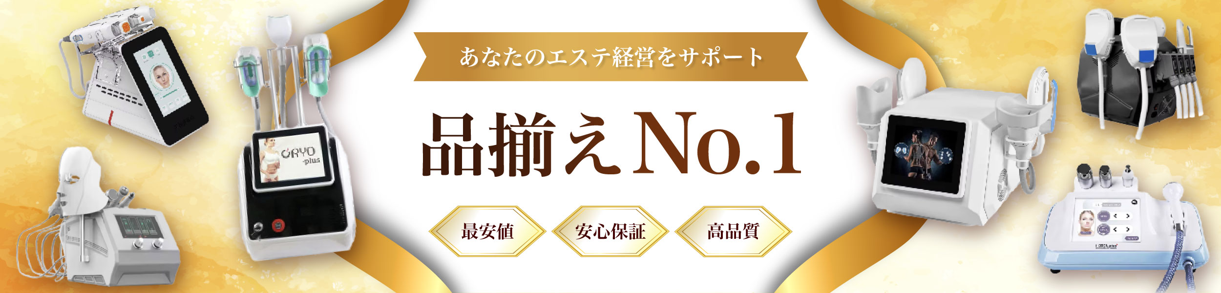 美容機器業界では最大級の品揃え。脱毛機だけでなく、ホワイトニング、ハイドラフェイシャル、脂肪冷却等サロンをすぐに始めれるまで多くの品物を取り揃えており、サイズ違いの中から選べます。
